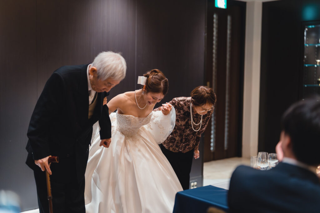 こちらの新郎新婦様は、幼い頃から今までずっと可愛がってくれた、お祖父様・お祖母様と中座されました。
