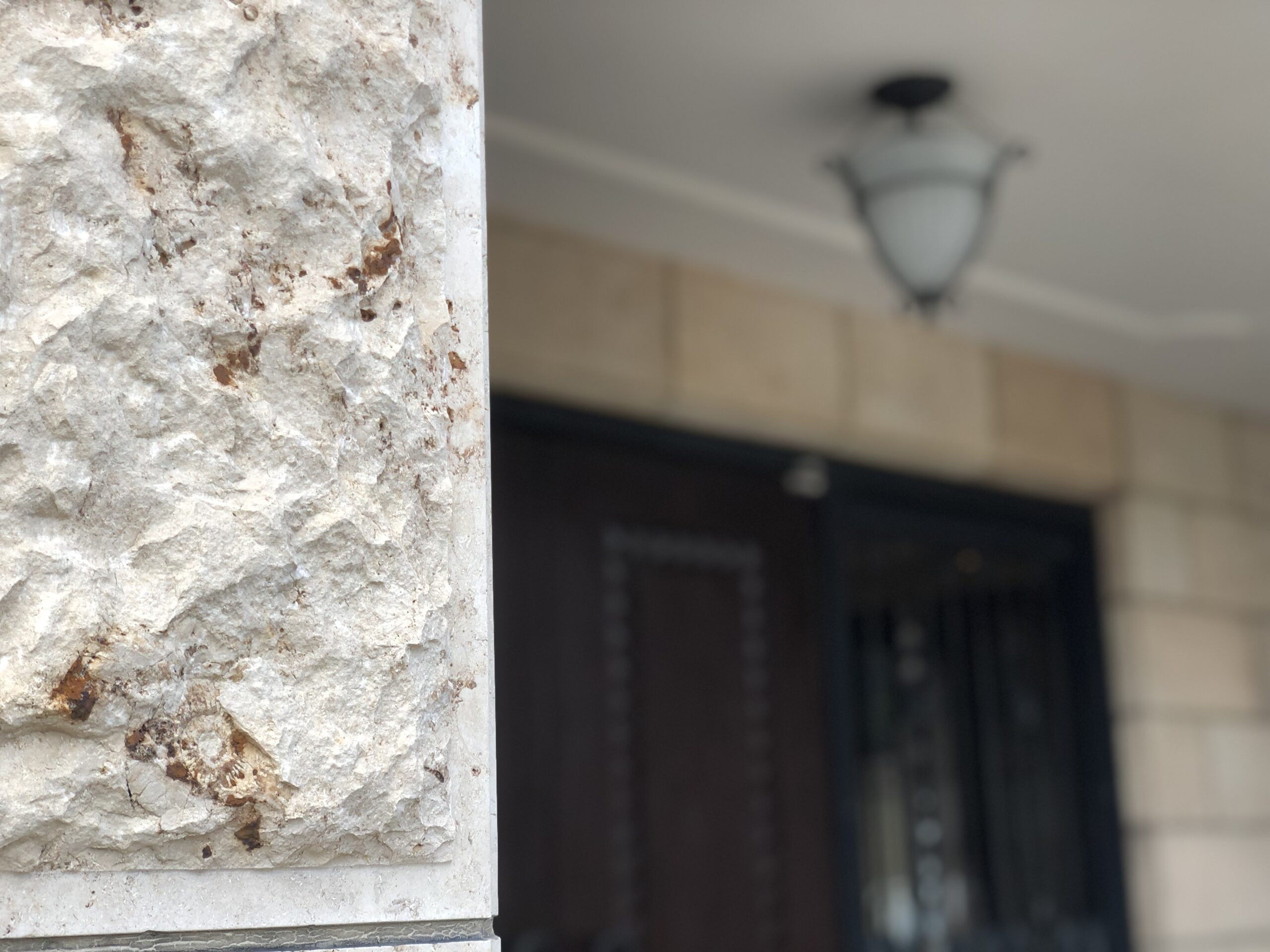 その入口の石の壁には…なんと貴重な「化石」が眠っています。