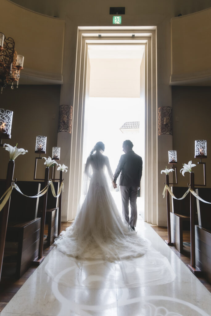 覚王山ル・アンジェ教会の魅力の1つである扉が開く瞬間は、一筋の光が差し込み、とても幻想的なシーンとなります。